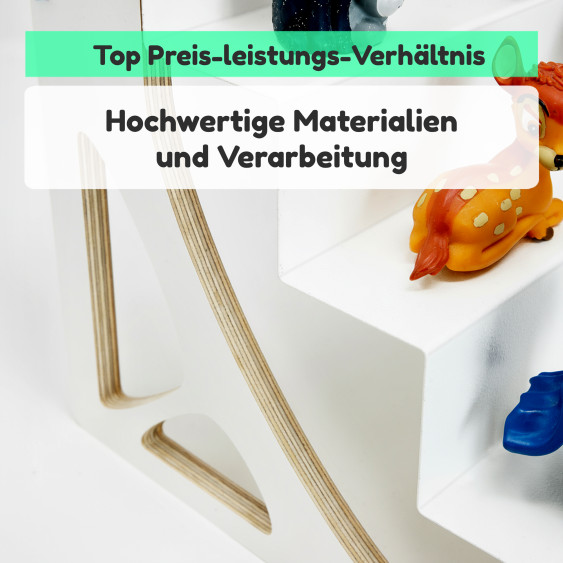 • Stabile Ablageböden für sicheren Halt der Figuren.