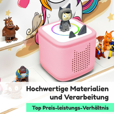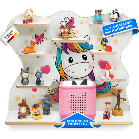 Am praktischsten sind die eingebauten Metallbleche, damit die Figuren magnetisch daran haften und nicht so häufig herunterfallen. Die Box steht bei uns auch nicht einfach lose auf der Halterung, sondern wir haben für den sicheren Stand der Musikbox einen abgekanteten Rahmen eingefasst. Wir legen Wert auf hohe Qualität. Die für den Druck verwendeten lichtechten Farbe sind nicht nur langlebig, sondern zeichnen sich auch durch ihre hohe Farbbrillanz aus. Zum Aufstellen oder Aufhängen - die Regale bieten individuelle Gestaltungsmöglichkeiten.
