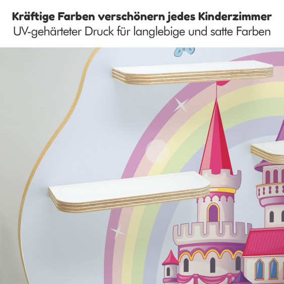 Die Kinder-Regale sind im Wortsinne eine runde Sache, denn Ecken und Kanten sind fein säuberlich abgeschliffen und gerundet. Sicher ist sicher. Wir arbeiten mit Multiplex-Platten und verzichten dabei bewusst auf kostengünstigere Alternativen wie Kunststoff oder Plastik. Unsere Motive sind mittels UV - Digitaldruck direkt auf der 10 mm Holzplatte aufgebracht.