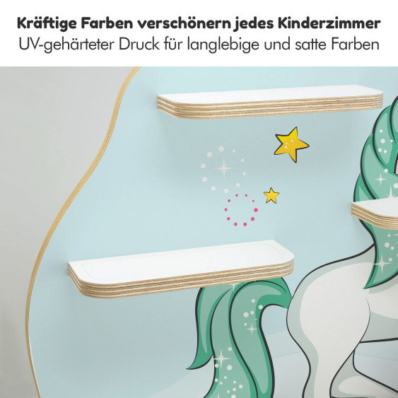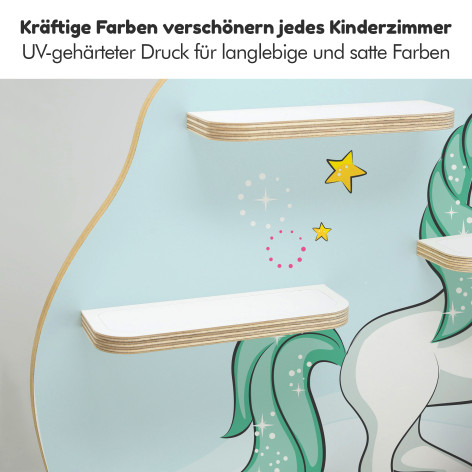 Die Kinder-Regale sind im Wortsinne eine runde Sache, denn Ecken und Kanten sind fein säuberlich abgeschliffen und gerundet. Sicher ist sicher. Wir arbeiten mit Multiplex-Platten und verzichten dabei bewusst auf kostengünstigere Alternativen wie Kunststoff oder Plastik. Unsere Motive sind mittels UV - Digitaldruck direkt auf der 10 mm Holzplatte aufgebracht.
