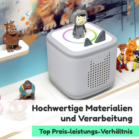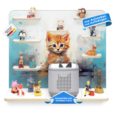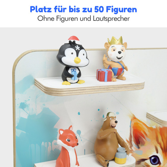 Am praktischsten sind die eingebauten Metallbleche, damit die Figuren magnetisch daran haften und nicht so häufig herunterfallen. Die Box steht bei uns auch nicht einfach lose auf der Halterung, sondern wir haben für den sicheren Stand der Musikbox einen abgekanteten Rahmen eingefasst. Wir legen Wert auf hohe Qualität. Die für den Druck verwendeten lichtechten Farbe sind nicht nur langlebig, sondern zeichnen sich auch durch ihre hohe Farbbrillanz aus. Zum Aufstellen oder Aufhängen - die Regale bieten individuelle Gestaltungsmöglichkeiten.