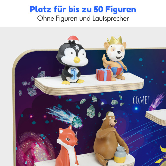 Am praktischsten sind die eingebauten Metallbleche, damit die Figuren magnetisch daran haften und nicht so häufig herunterfallen. Die Box steht bei uns auch nicht einfach lose auf der Halterung, sondern wir haben für den sicheren Stand der Musikbox einen abgekanteten Rahmen eingefasst. Wir legen Wert auf hohe Qualität. Die für den Druck verwendeten lichtechten Farbe sind nicht nur langlebig, sondern zeichnen sich auch durch ihre hohe Farbbrillanz aus. Zum Aufstellen oder Aufhängen - die Regale bieten individuelle Gestaltungsmöglichkeiten.