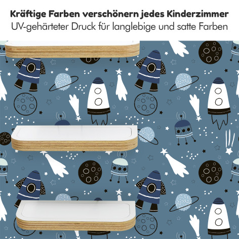 Die Kinder-Regale sind im Wortsinne eine runde Sache, denn Ecken und Kanten sind fein säuberlich abgeschliffen und gerundet. Sicher ist sicher. Wir arbeiten mit Multiplex-Platten und verzichten dabei bewusst auf kostengünstigere Alternativen wie Kunststoff oder Plastik. Unsere Motive sind mittels UV - Digitaldruck direkt auf der 10 mm Holzplatte aufgebracht.