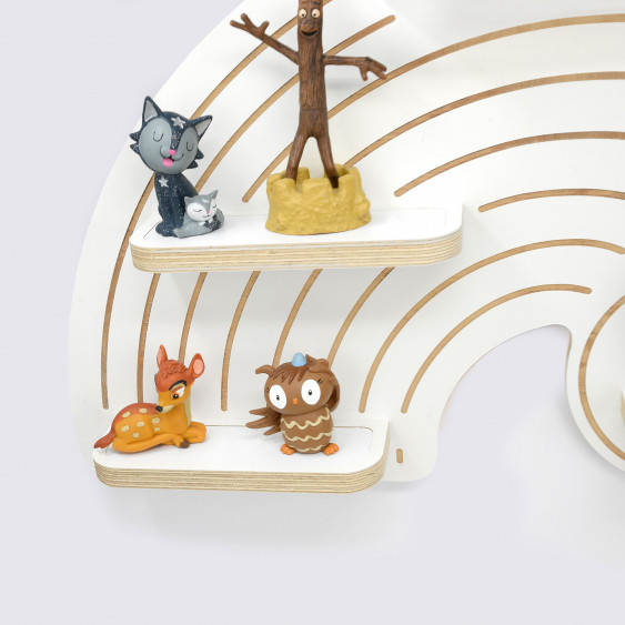 Die Kinder-Regale sind im Wortsinne eine runde Sache, denn Ecken und Kanten sind fein säuberlich abgeschliffen und gerundet. Sicher ist sicher. Wir arbeiten mit Multiplex-Platten und verzichten dabei bewusst auf kostengünstigere Alternativen wie Kunststoff oder Plastik. Am praktischsten sind die eingebauten Metallbleche, damit die Figuren magnetisch daran haften und nicht so häufig herunterfallen. Wir legen Wert auf hohe Qualität. Zum Aufhängen.
